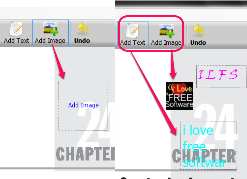 Now you can add any supported image or custom text on erased part. You can insert jpg, gif, png, and bmp images. To insert an image, use Add Image button, move your cursor at the required position, and click there. Then it will open a window using which you can insert image from PC to that part. As it is possible that inserted image can be of large size, so you can even adjust size of inserted image, and can fit it to erased part.