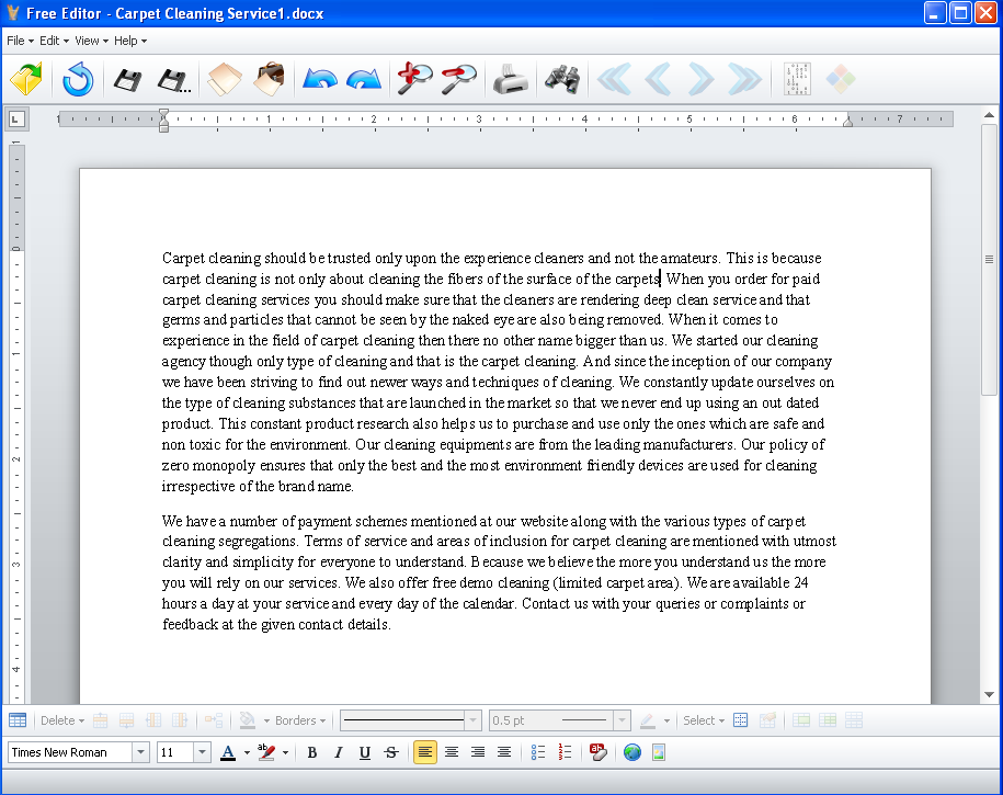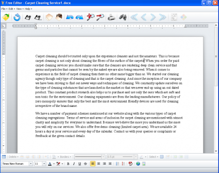 Free Editor allows an existing document to be saved in another preferred file format. The selected document can be viewed enlarged or minimised with the help of zooming tab. These features not only allow the user to edit the document but also view it according to his/her visibility and ensure that no details of the document remain unnoticed.