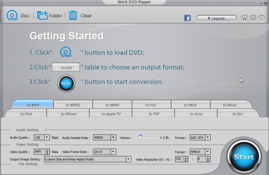 This free DVD Rip Software can rip DVD to WMV, rip DVD to MP4, rip DVD to MPEG, to MOV, FLV, and H.264. All these with this excellent total DVD Ripper. WinX DVD Ripper makes ripping DVD as easy as a pie.