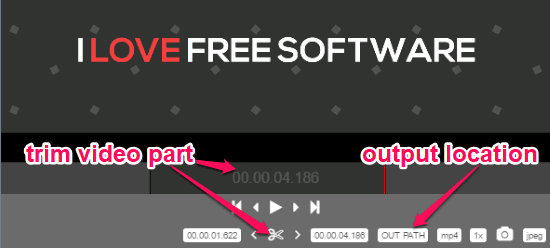 After you’re done setting the start time, click again on the timeline where you want to set the end time. The click on the “Arrow” icon associated with the end time field at the bottom. Once you’re all set, simply click on the “Scissor” icon between the arrows to trim the selected video part. The select video part will be trimmed instantly and saved to the output location. You can choose the output location manually.