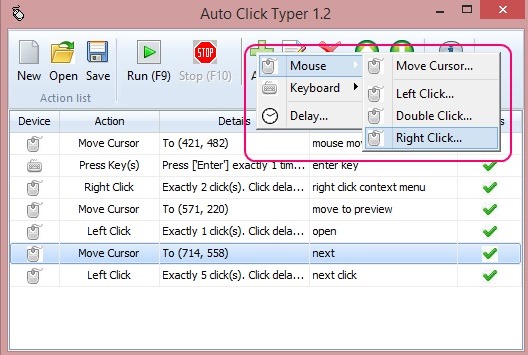 Auto Click Typer is a free macro recorder software to auto-repeat keyboard and mouse operations. Just like the macro recorders of some word processors and text editors, this freeware also lets you record some keyboard and mouse operations, like: moving cursor, right-click, left-click, double-click, pressing a single key, or typing a complete multi-line textual content. You can also set the number of repetitions for each of these actions, till the time you want, and control the repetitions time gap.