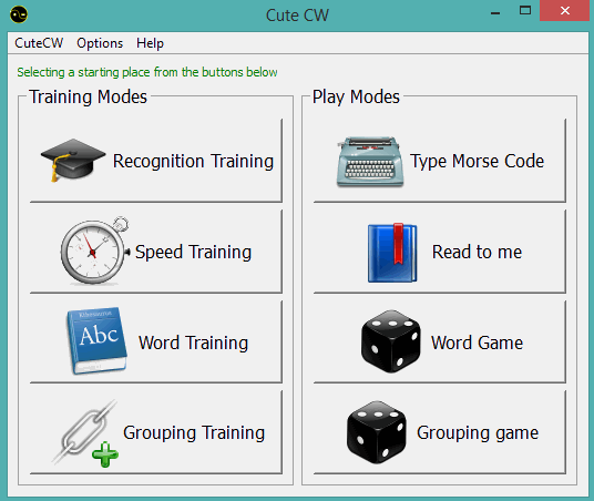 The best Morse Code software listed here is ‘Cute CW‘. It comes with Training Modes and Play Modes. Both of these modes provide 4 different sections.