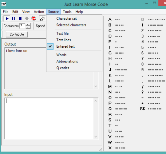 Another very useful software in this list is ‘Just Learn Morse Code’. You can use it to learn Morse code by entering the custom text, a text file, random characters set, words, abbreviations, etc. Unique feature comes with this software is that it lets you record the sound and save it as wav file.