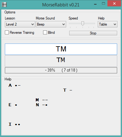 MorseRabbit is also a good software to learn Morse code. It comes with two modes: Normal and Reverse Training Mode. Using the first mode, it will provide a sequence of Morse code on its interface and you need to type the correct letters. In Reverse Training mode, you will see some random letters and you need to type the correct sequence of Morse code. Apart from viewing letters, it also provides Morse sound. This will help you understand about Morse code in a much better way.