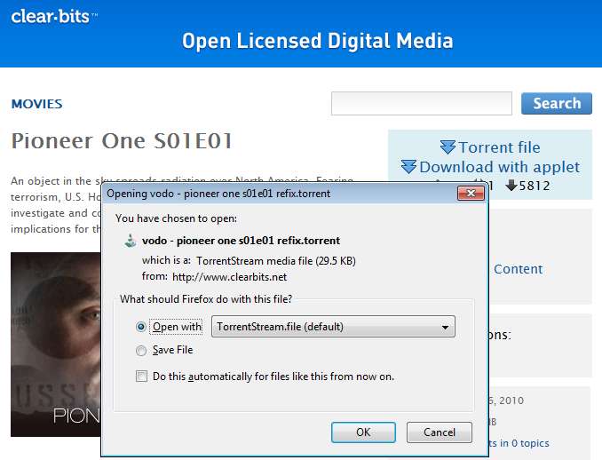 You’re gonna be asked if you want to open the file with Torrent Stream or download it. Select the first option, TS Player will open up and start playing the torrent right away. When it comes to setting up-stream broadcasts, you need to right-click on the system tray icons and select Broadcasting.