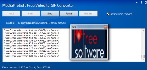 MediaProSoft Free Video to GIF Converter is a handy software that helps to convert any popular video format file to animated gif. Whether you have 3GP, AVI, MP4, MPEG, FLV, WMV, VOB, or MOV video file, it can be converted into gif with this freeware. It can even convert a particular part of input video as animated gif. Thus only relevant part can be extracted from input video.