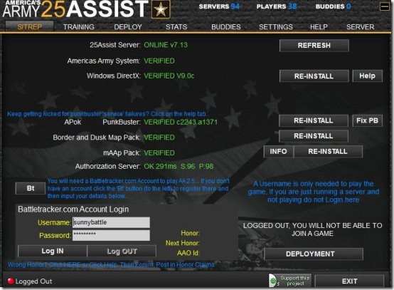 The software you will download is America’s Army 2.5 Assist. So, after installing this, click on download option. Then a 1.9GB download gets started. Even if there’s some break in your internet connection you can resume the download. After your download is completed just create a username and password in the www.battletracker.com site. It’s a very easy and free process. Check your email and activate your account. After that visit the website again and click on My Profile and choose tracker settings. In that Choose PC Games and enter your username in America’s Army 2 Player name option. Press Submit and then go back to the assist software. Enter your Username, Password, and click Login.