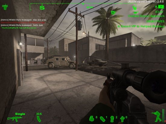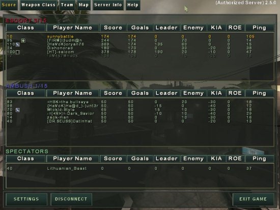 After you join any of the server, a new full screen game will open. Click join in Defense or Assaults team. As you can see in the below screenshot, you can view the scores in score tab. Weapon class, team, map details, server info, and help is also available. After some time the game will start and you will be in the battlefield with your team mates. If you want to create your own server then click on the server tab in the America’s Army assist window. A small software will be downloaded and installed on which you can create your own server.