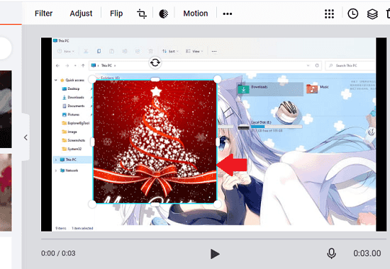 Whatever photo or GIF you select can be positioned anywhere in the final GIF. You can also resize it and use the other tools as well.