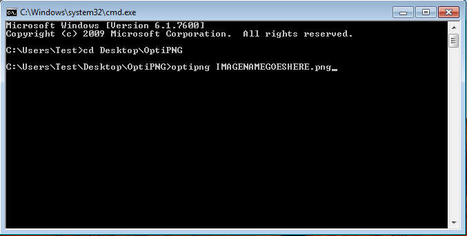 What we’re about to describe here is PNG optimization with the default settings. To do more, you’re gonna read up on the various commands that OptiPNG uses, open up the doc directory in the main application directory for a manual. Renaming the main application directory should be the first thing that you do, change it to something simple, like OptiPNG. Make sure that you have it saved on your desktop, otherwise the commands that we posted here will not work. Open up the command prompt by typing cmd in the Windows Start Menu search and hit Enter. Type in the following: