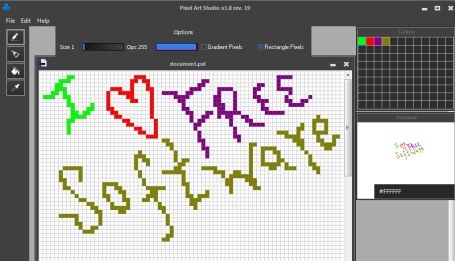The above screenshot gives a clear idea about what you can do while working with Pixel Art Studio. Simply open a new file on this software and use a pencil for pixel drawing. Just hold left click and drag your mouse for creating a drawing. At the bottom left corner of its interface, you can find and change colors according to your need. There are two (primary and secondary) color options available for left and right mouse click.