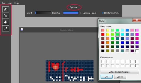Start creating your own pixel art or you can import any image from your computer using File menu. Once after importing an image, you can change it into pixel image easily. This way you can perform pixel art in it, and if anything wrong happens by mistake, then you can erase that part using Eraser tool.