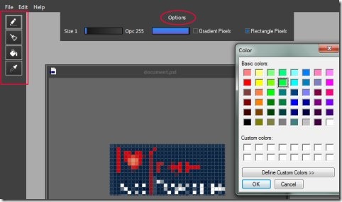 Pixel Art Studio is a free pixel art style drawing software for Windows that helps to make pixel art (a digital art is in which images are edited on pixel level) in an easy manner. You can easily and conveniently prepare pixel images by just using your mouse. It’s so easy to build pixel images with Pixel Art Studio. You can easily draw anything you like to draw and it will take pixel shape simultaneously just like the way you want. Prepare and save your work and explore your pixel art using Pixel Art Studio. Not only you can save created pixel images, infact you can even export your work in form of jpg and png image file format.