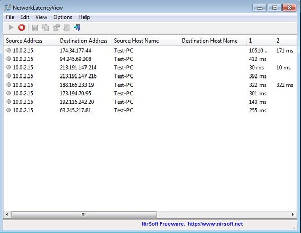 Network latency test that you can perform with NetworkLatencyView is basically the same thing you can do with traceroute. Test goes up to 10 hops and calculates the average time that it took to go through all 10 hops and reach the destination address. Unlike traceroute, it will do this for every active TCP connection, automatically, on the selected network adapter.