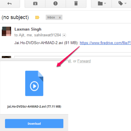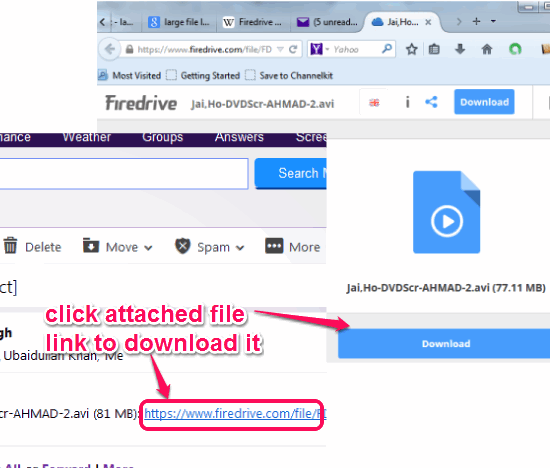In above screenshot, you could see large files attached by me in Gmail using Firedrive extension. Users will be able to download attached file without any hassle. All they need to do is click the attached file and download that file.