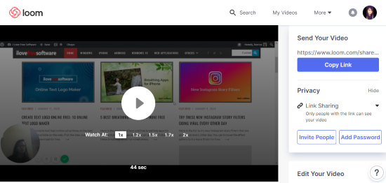 Once you’re done recording the video, you get a link that can be shared with others. But before sending the video, you can edit it as per requirements.