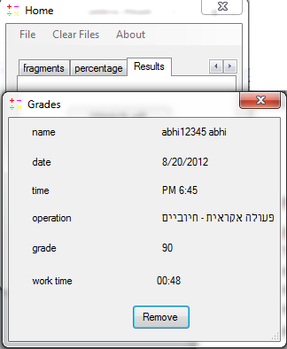 Whenever you start a challenge, a timer automatically starts, and you need to complete the task within a stipulated time. The files option lets you change the name and update language used in this software. If you want to clear all the files and grades in the software, then you can go in the clear files option and remove them. Download Peulot Heshbon free.