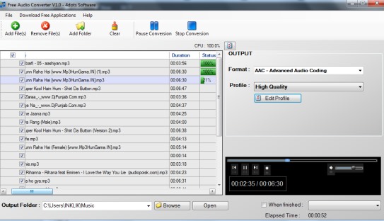 Free Audio Converter 4dots is a good audio file converter. Best part I like about this software is that users can edit output profile and can use in-built music player to play audio files. Give a try to this audio file converter.