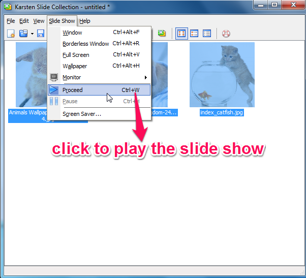 Step 3: After you have added the files to your slideshow playlist, go to the slideshow option and click “Proceed” to start playing the slideshow. You can choose your slideshow to play in the form of screensaver, wallpaper, or a window from here. If you have added videos to your slideshow and you choose “wallpaper” option, then this will only show thumbnail of video in the slideshow and won’t play complete video.