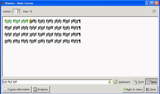 - Basic Course: After you see how to correctly position your fingers on keyboard, you can take an initial training by seeing characters on screen and trying to type them correctly.