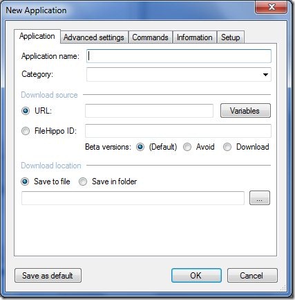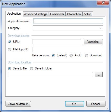 - Click on the Add new application option. A window pops up where you are supposed to enter the URL from which the particular software you wish to be updated is downloaded. Enter the specified location where you wish to save the downloaded file. It is always preferred to save the downloaded contents in a folder as the downloaded file name would be different every time because it also includes the version number.