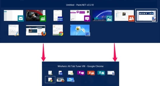 In this way you can customize application switcher in Windows 8 using Alt Tab Tuner.