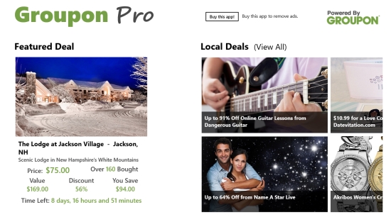 Groupon Pro is freely available in the shopping category of the Windows Store.