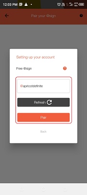 3. Keep tapping ‘Refresh and browse through the ones that are offered to you since you are not allowed to type your own @sign. Tap on ‘Pair’ once you are done.