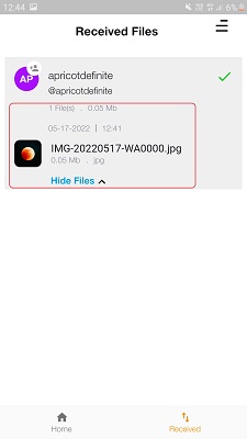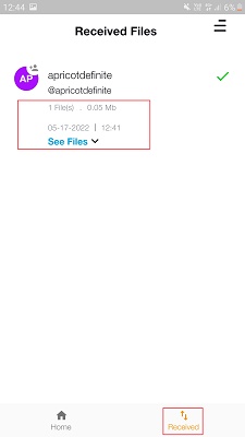 8. The intended recipient should tap on ‘Received’ on the home screen of the @mospherePro app and then tap on ‘See files’ to view the files that have been delivered. Finally, tap on the file name to download the files on the recipient’s device.