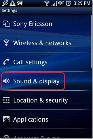 Step 3: Tap on “Sound & Display” option or “sound” option in settings menu. These option differ from phone to phone.