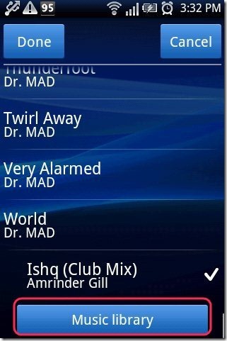 Step 5: Tap on “music library” or “new ringtone” option.
