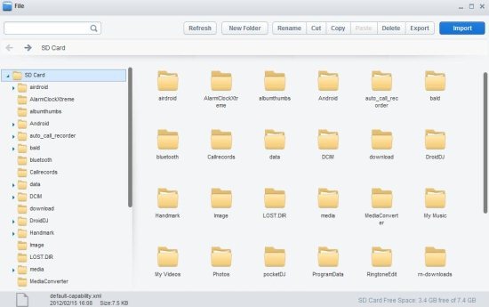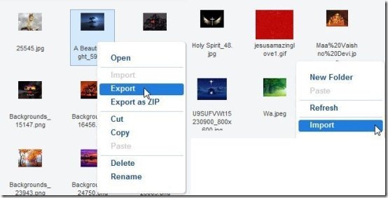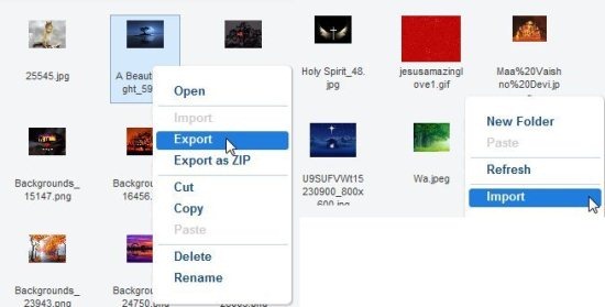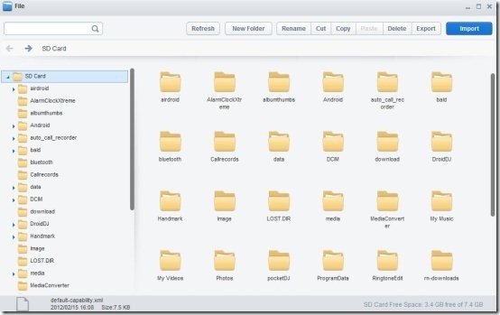 Step 12: Right click on the file or any folder and then click on export option to copy the file from Android to computer. For copying any file from computer to Android, just right-click anywhere on the blank space and then click on import option. For copying any file in any specific folder on Android, just open the folder and then right-click anywhere on the blank space and then click on import option.