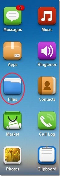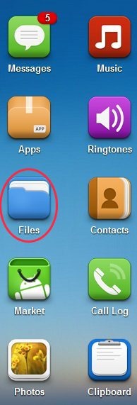 Step 10: The web page of the browser will display your phone name along with the files option and other apps. Click on “Files” option on the web browser of your computer.