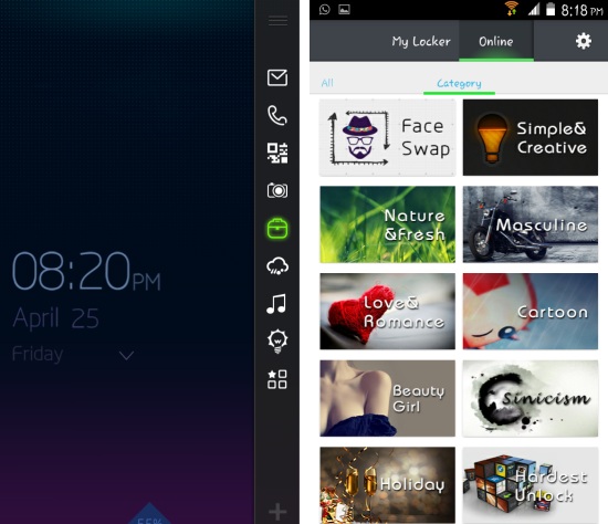 When you launch Locker Magic app from the app drawer, you will have the interface as seen here, in which you can find themes and download them with ease. Themes are divided into different categories, which makes it easy to find themes. To download a theme, just tap on it, and the app will take you to the Google Play Store Link.