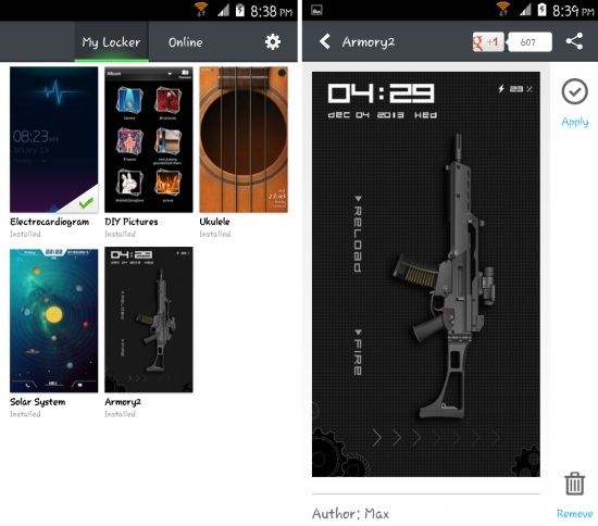 Once downloaded, navigate to the ‘My Locker’ and tap on the theme which you like to install and then you will have the interface as seen here. Tap on the apply button and you will have a brand new and totally different looking lock screen.