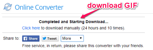 Step 3: As soon as you do that, it will start processing your video and then convert it into a GIF file. You can easily download the GIF to your PC for free.