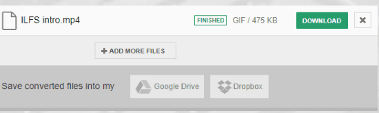 Step 3: Now, it will start processing the video and will automatically convert it into a GIF. Do note that the processing time depends on the file size. Once the GIF is generated, you can download it to your PC or upload it to Google Drive and Dropbox.