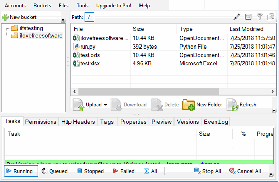This post covers 5 free Amazon S3 client software for Windows. If you use Amazon S3 as the cloud storage to store personal files then the following software will help you manage them. These software let you connect to your S3 storage cloud using AWS API keys and let you download, upload files. You can make new folders in the cloud and then upload files in them accordingly. These software work as the normal cloud explorer software to manage files on cloud. Some of the following software are dedicated S3 clients while some of them can also be used for connecting to other cloud storage services like Google Drive, Dropbox, etc.