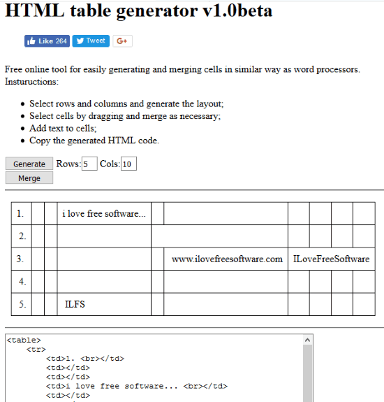 This website doesn’t come with other features like set font, text size, border width, cell padding, etc. Still, if you want to generate a simple HTML table with feature to merge split cells, replace td and th tags, etc., then this website is surely useful.
