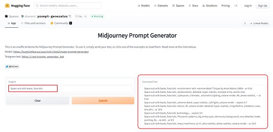This is an unofficial MidJourney prompt builder built using the GPT-2 language model which has been trained with the MidJourney Prompts Dataset. This dataset contains more than 250k text prompts that have been supplied to the text to image service of MidJourney by users. Click on the link that we have provided below, simply describe the image that you wish to generate in natural language and click on ‘Submit’.