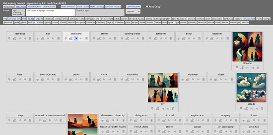 This is an extensive prompt builder developed by T.L. Ford and offers a wide and diverse range of options to choose from which assists you in building the perfect prompt for you MidJourney image generation.