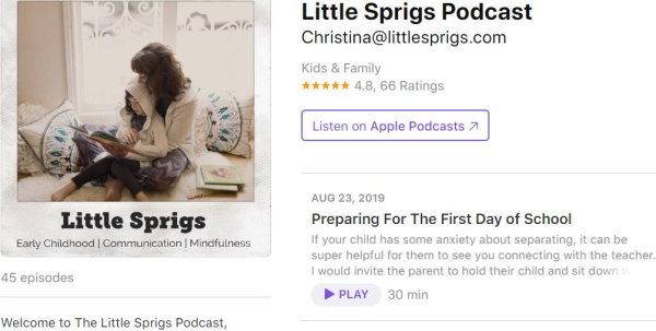 Little Sprigs is hosted by Christina Rochelle, where you will find interviews with experts, recording about preschoolers, education, communication, mindfulness. The various topics discussed on the podcast are how to stop using bribe and punishment to motivate, raising confident kids, what to do when your child starts hitting another child, etc.