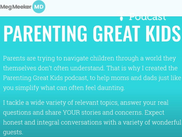 Parenting Great Kids is a podcast with Dr. Meg Meeker, who is a leading authority on parenting, teens, and children’s health. She through her podcast offers practical insights into simplifying things which sound overwhelming to parents. She covers various topics and answers questions put up by parents.
