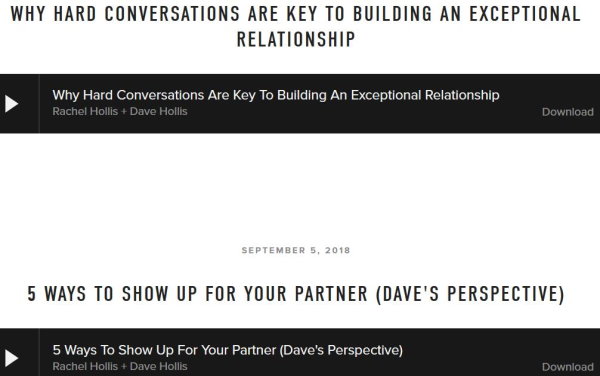 Rise Together is a podcast hosted by Rachel Hollis and Dave Hollis. The podcast is a conversation about their relationship and advice on how partners can help to bring the best out of each other. You can find advice on being parents, how to keep you relationship alive, etc. No matter what phase of parenting you are going through you will find some good advice through this podcast.