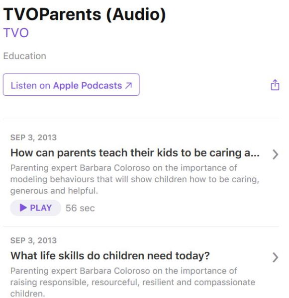 TVO Parents is a podcast where you can get advice, news, and information about latest educational research. The podcast brings together parents, experts, to help you help your kid in turn succeed in life. The podcast covers various topics like what life skills do kids need now days, tips for parents on digital literacy, etc.