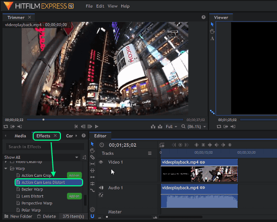 HitFilm Express is a popular free video editor software that packs lots of advanced video editing tools and features. You can download the free version of HitFilm Express and use it to remove the fisheye effect from videos. In order to download and use the free version, you have to create an account first. When you do that, you get a confirmation email in your inbox along with a link to download the software. Once installed, log in with your account to activate the software.