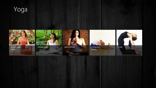 Yoga is a free app for Windows 8 that shows you a lot of Yoga asanas that allow you to stay fit and in shape. When you launch the app, you will be presented with 5 categories: SEATED AND TWIST, PRANAYAMA, MEDITATION, FORWARD BENDS and CORE.