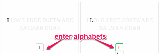 Step 2: Now, it will automatically detect the alphabets, but you can make a correction if there is any mistake with the alphabets. To do this, all you gotta do is enter the correct alphabet in the box associated with the highlighted alphabet.