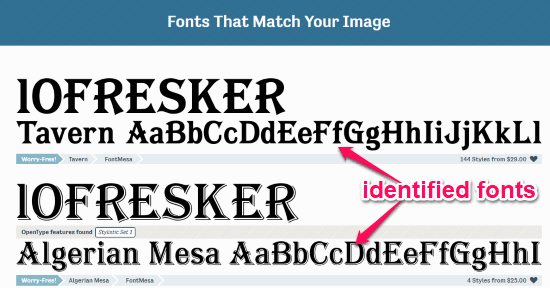 The matching fonts shown by these websites includes both free and paid fonts. But, if you want to only find the free alternatives then check out our post on how to find free alternatives to paid fonts. Have an image with a text and you don’t know what the font is? Well, then upload it to any of these websites and find out the fonts that matches with it.