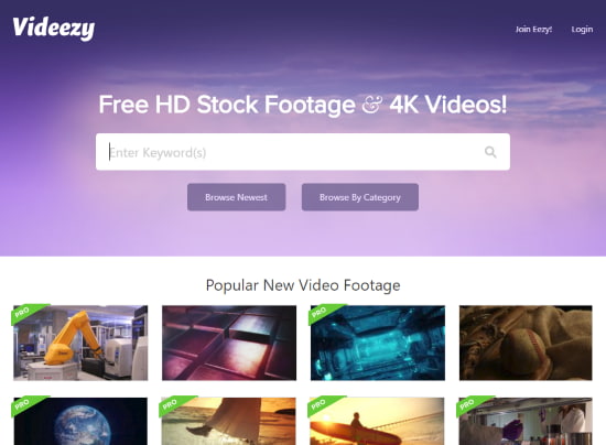 Videezy is another website to download stock videos for free. This website has a large collection of free as well as premium stock footage. You can browse video by categories or use the search tool to find what you are looking for. On the thumbnails of the videos, this website displays the PRO banner differentiate the premium videos from the free one. The free videos require you to add an attribution, and if you want to avoid that, you can do that by buying the credits.